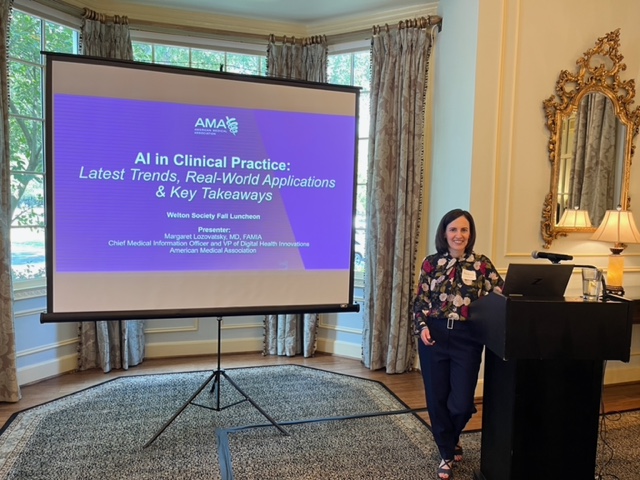 The MCMS Welton Society gathered recently for an engaging presentation by Dr. Margaret Lozavatsky, CMIO/VP of Digital Health Innovations with American Medical Association, who shared insights on the rapidly evolving role of artificial intelligence (AI) in healthcare. Dr. Lozavatsky discussed how AI is transforming clinical decision-making, diagnostics, and patient care while also highlighting the importance of maintaining human connection and ethical responsibility in medicine. The discussion sparked thoughtful questions and conversation among attendees, reflecting the curiosity and lifelong learning spirit that define the Welton Society.