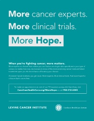 At Levine Cancer Institute, you get more. More experts. More clinical trials. And more hope for